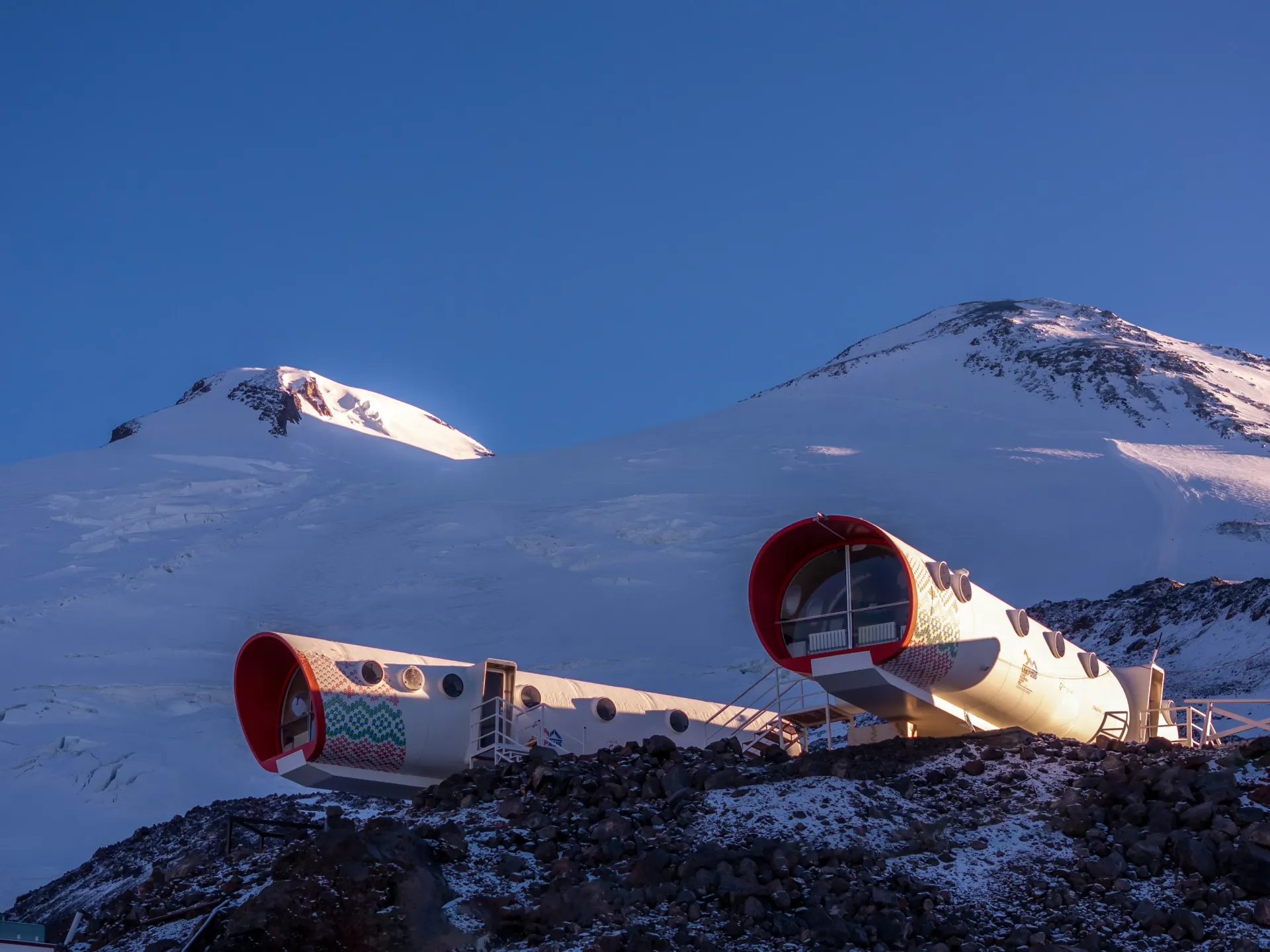 Высокогорный приют Cosmos Elbrus Leaprus Camp на высоте 3912 метров над уровнем моря – самый высокий не только в России, но и в Европе эко-отель для проживания в горах. Он расположен на южном склоне горы Эльбрус, куда можно комфортно и быстро добраться по канатной дороге одноимённого курорта – в современных закрытых кабинах-гондолах. И далее – трансфером до отеля на снегоходе или ратраке. Управляет курортом институт развития Северного Кавказа – Кавказ.РФ.